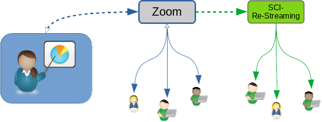 Die Zoom-Sitzung kann z.B. über die Streaming-Server des SCI als Live-Stream übertragen werden. Dadurch haben Sie als Teilnehmer*in keinen direkten Kontakt zu Zoom und es werden keinerlei Ihrer Daten nach außerhalb der TUK übertragen.Das Re-Streaming kann nur auf Nachfrage durch bzw. mit Hilfe der Dozenten durchgeführt werden. Sprechen Sie ggf. Ihre Dozenten/Dozentinnen dazu an, die sich dann an das SCI wenden können.