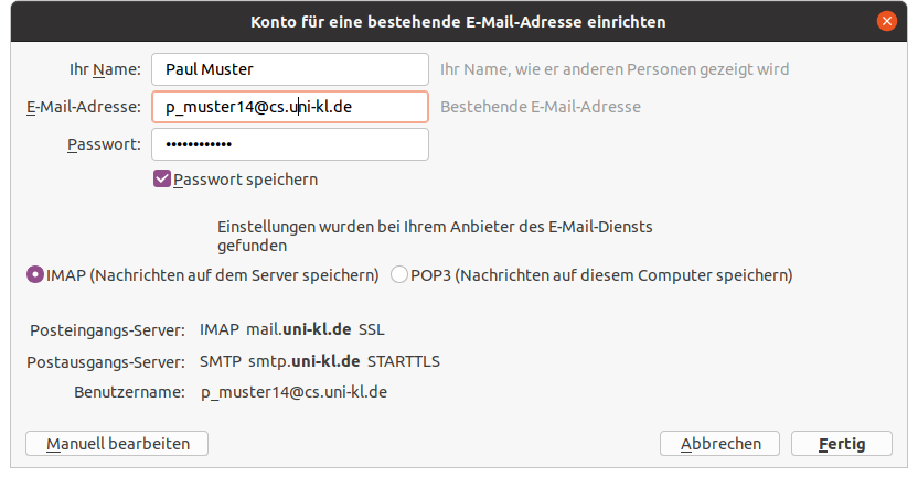Nutzen Sie dazu den Thunderbird-Assistenten um ein neues Mailkonto anzulegen.